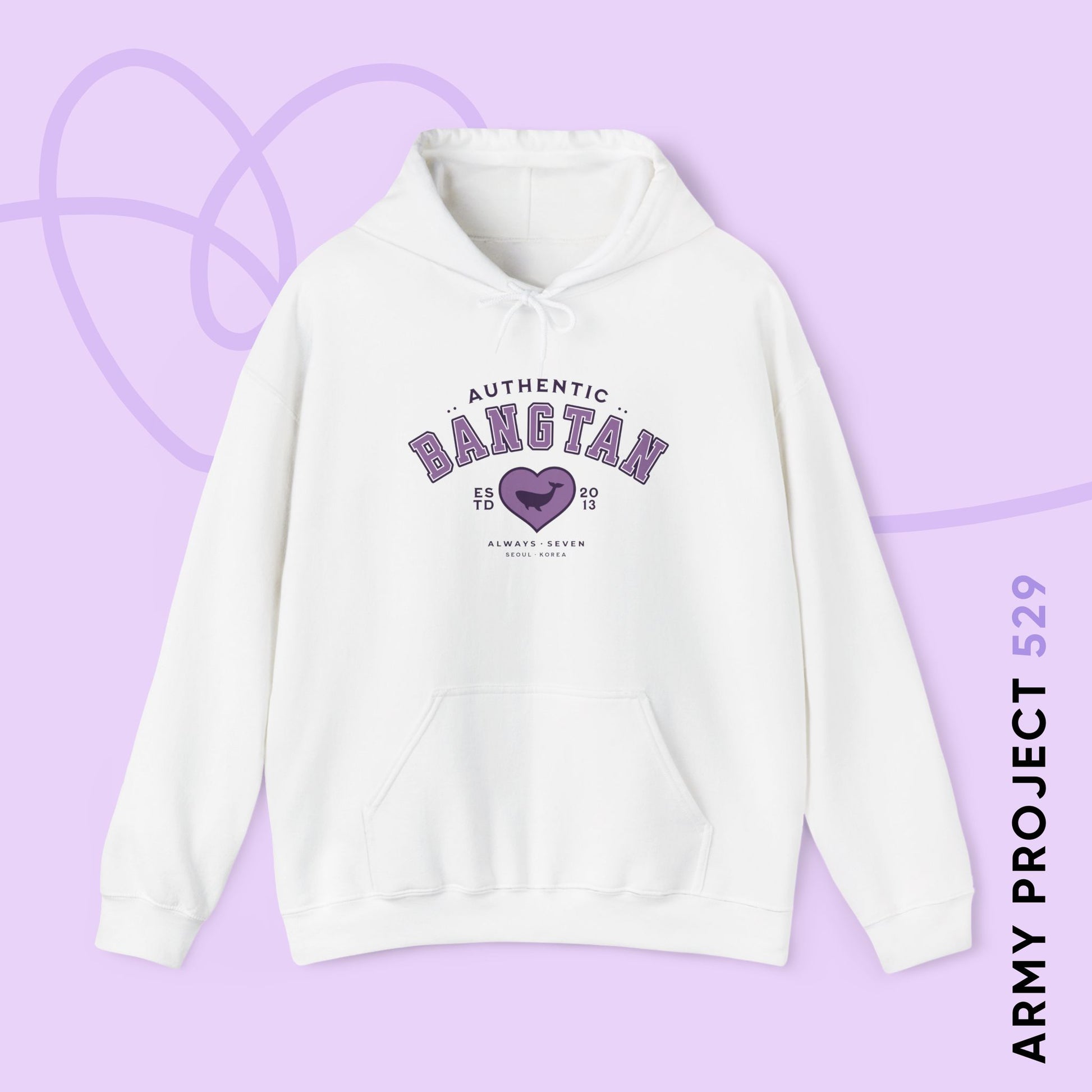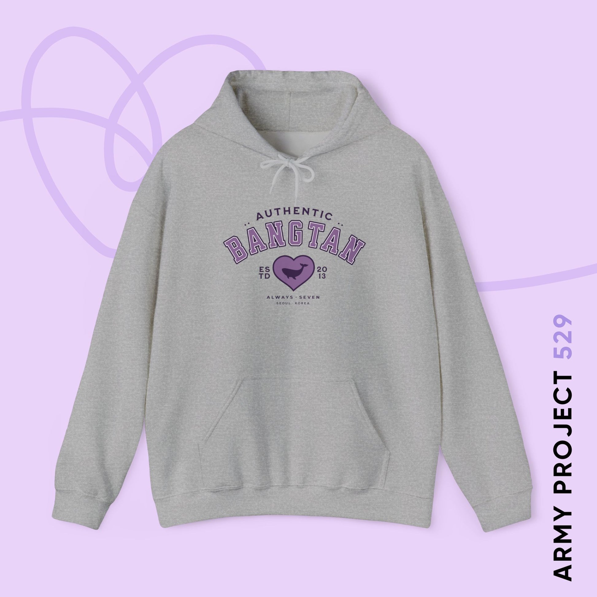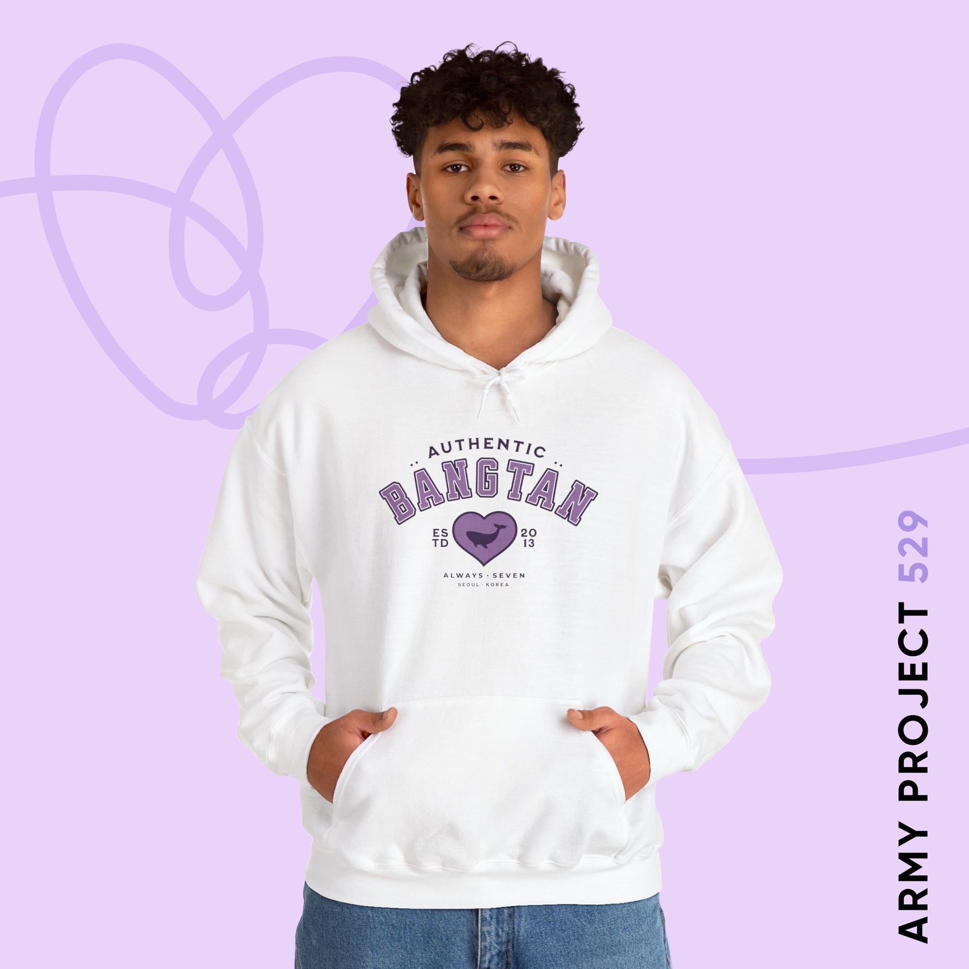 Step up your game with the exclusive Bangtan Athletics Hoodie, a design that subtly signals your commitment to OT7. Featuring a classic, sporty design that proudly reads "Authentic Bangtan," this hoodie is perfect for everyday wear. Originally created as a special anniversary gift for the ARMY Project 529 Admins, this fanmade BTS design has been requested by the community and is finally available to you.