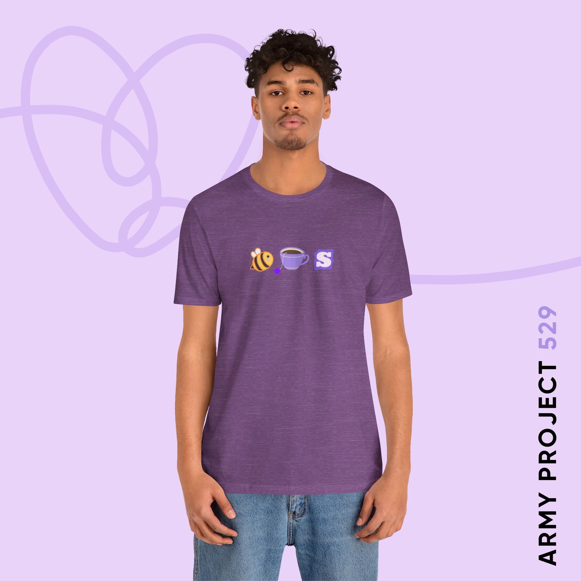Looking for a witty piece of apparel that's instantly recognizable to those in the know? The Bee Tea Ess Short Sleeve Tee features a clever design using images of a buzzing bee 🐝, a warm cup of tea ☕, and the letter 'S' to phonetically spell out the name of our favorite band. This unique fan-designed merch is incredibly cute and perfectly subtle, allowing you to show your fandom without being overt. This subtle fanmade BTS apparel is a fantastic conversation starter at ARMY meetups, letting you connect with others who appreciate a clever nod to Bangtan.