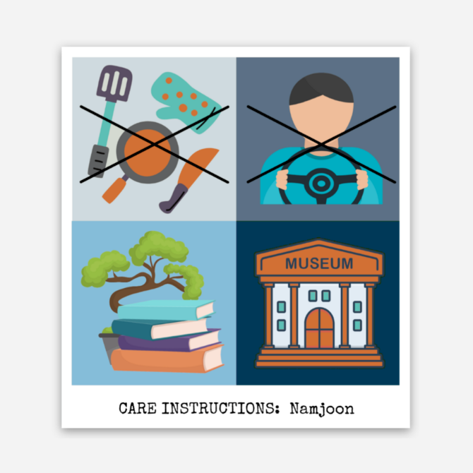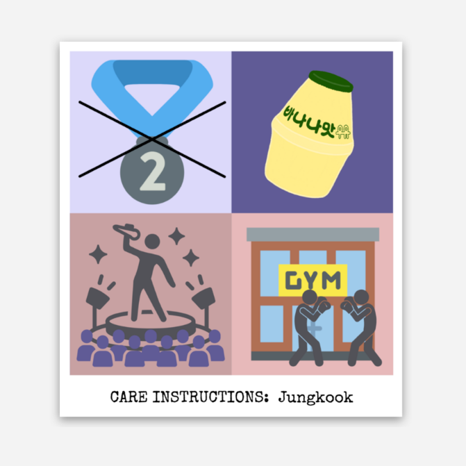 Personalize your laptop, water bottle, or car with these durable vinyl stickers featuring fun, original artwork inspired by Bangtan and the AP529 community! They're a great way to add some flair to your gear. Each sticker is made with thick, durable vinyl that offers premium protection, ensuring your full-color design remains safe from scratching, rain, and intense sunlight.
