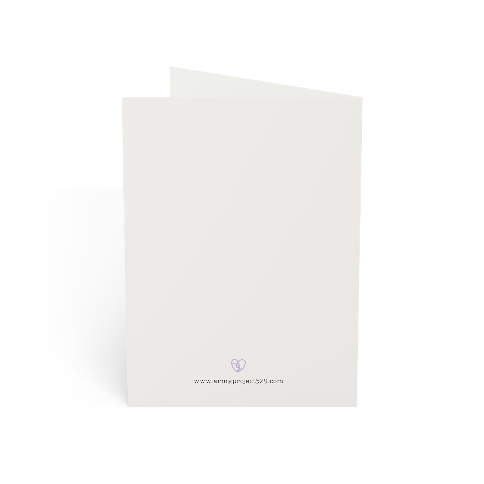 Printed on durable 270gsm paper with a soft matte finish, this premium greeting card feels high-quality in your hands. The interior is completely blank so you have plenty of room to write your personal message of support. Each card is 5x7 inches and comes with its own blank envelope. Choose from packs of 1, 10, or 30 cards to keep this beautiful greeting card on hand whenever an ARMY friend needs a message of encouragement.