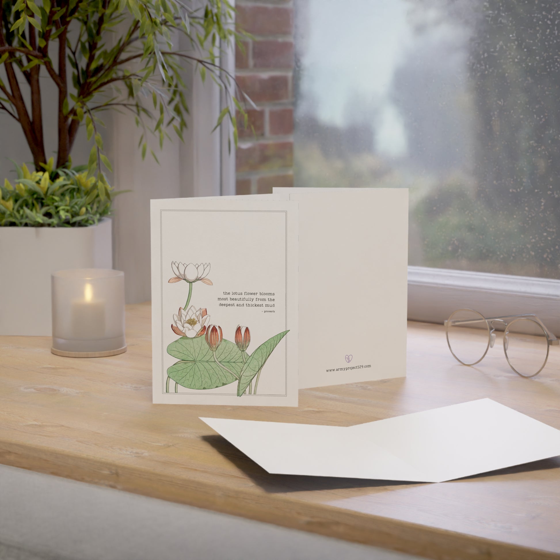 Fanmade BTS Greeting Card - Lotus Encouragement Quote - Vintage Floral Artwork