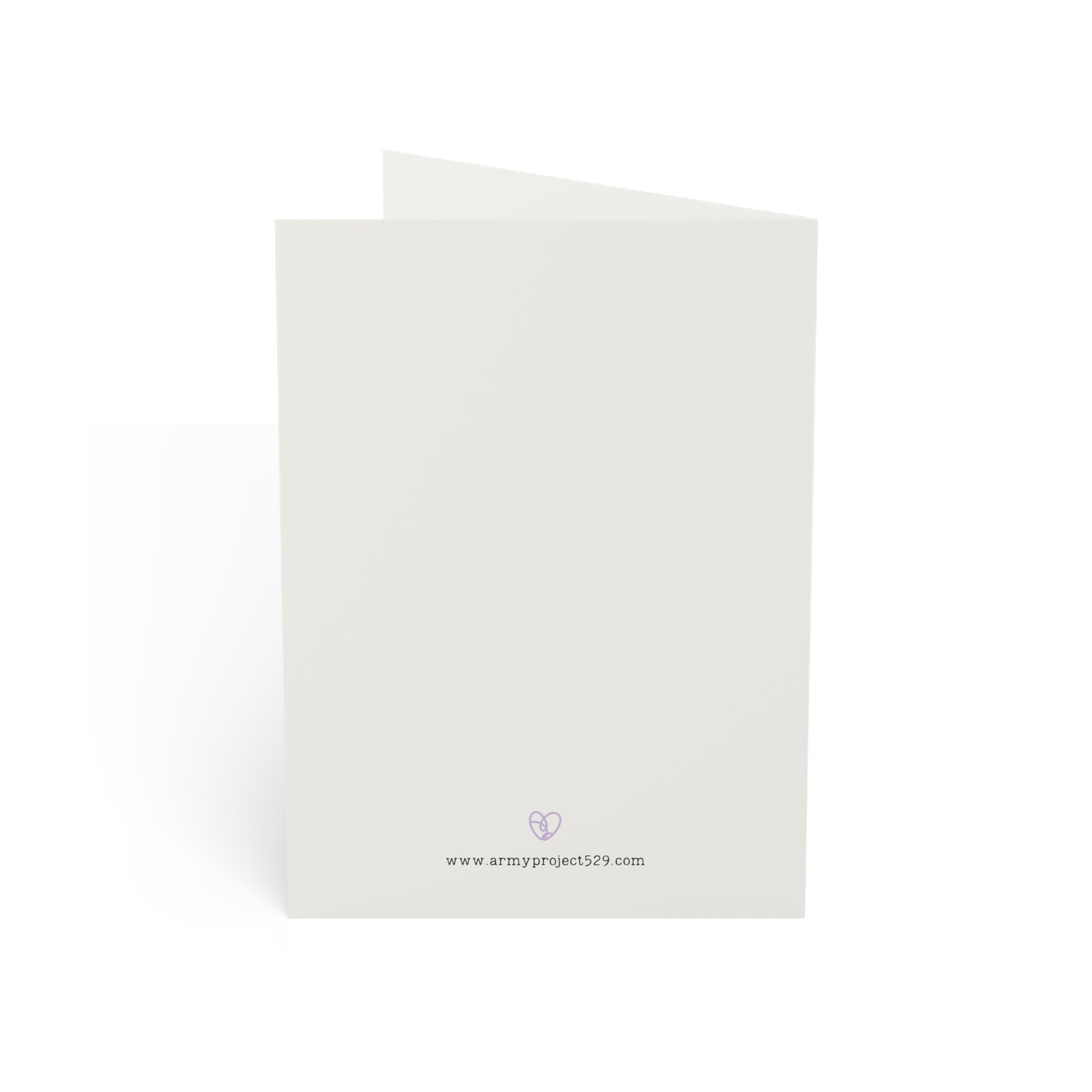 Printed on durable 270gsm paper with a soft matte finish, this premium greeting card feels high-quality in your hands. The interior is completely blank so you have plenty of room to write your personal message of support. Each card is 5x7 inches and comes with its own blank envelope. Choose from packs of 1, 10, or 30 cards to keep this beautiful greeting card on hand whenever an ARMY friend needs words of support and encouragement.