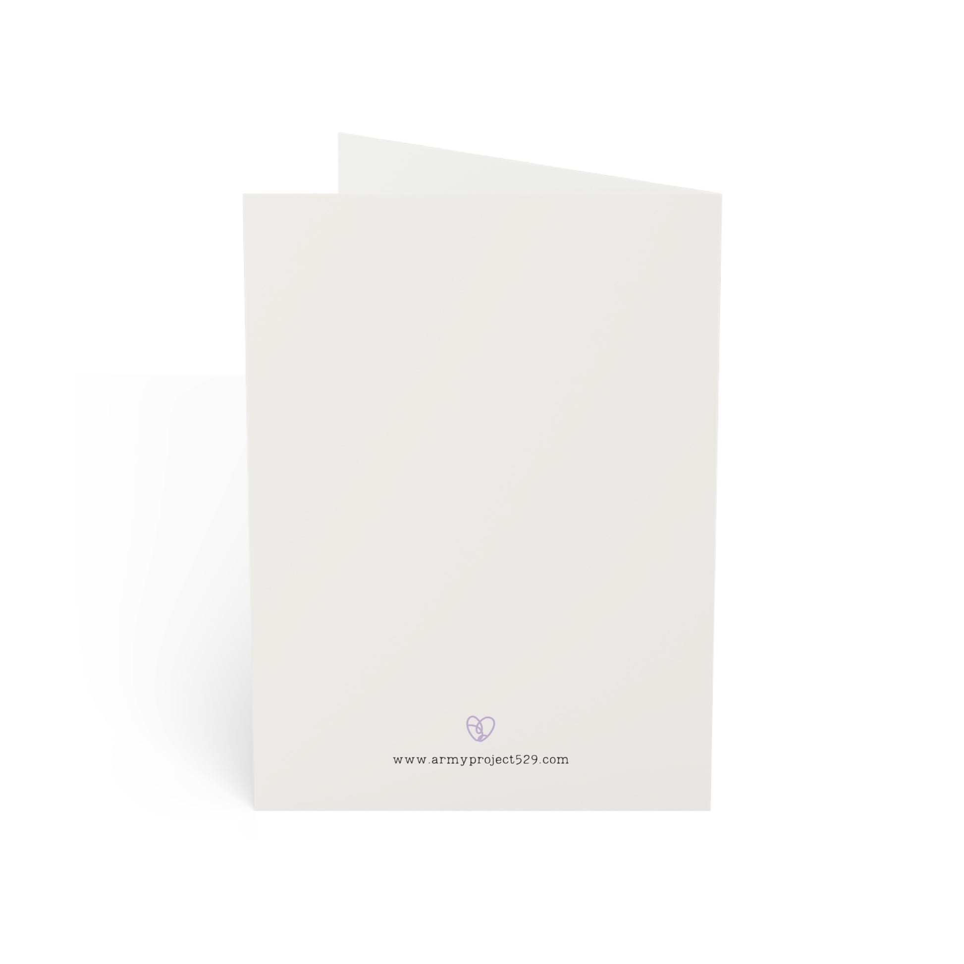 Printed on durable 270gsm paper with a soft matte finish, this premium greeting card feels high-quality in your hands. The interior is completely blank so you have plenty of room to write your personal message of support. Each card is 5x7 inches and comes with its own blank envelope. Choose from packs of 1, 10, or 30 cards to keep this beautiful greeting card on hand whenever an ARMY friend needs to 'hang in there' a bit longer.