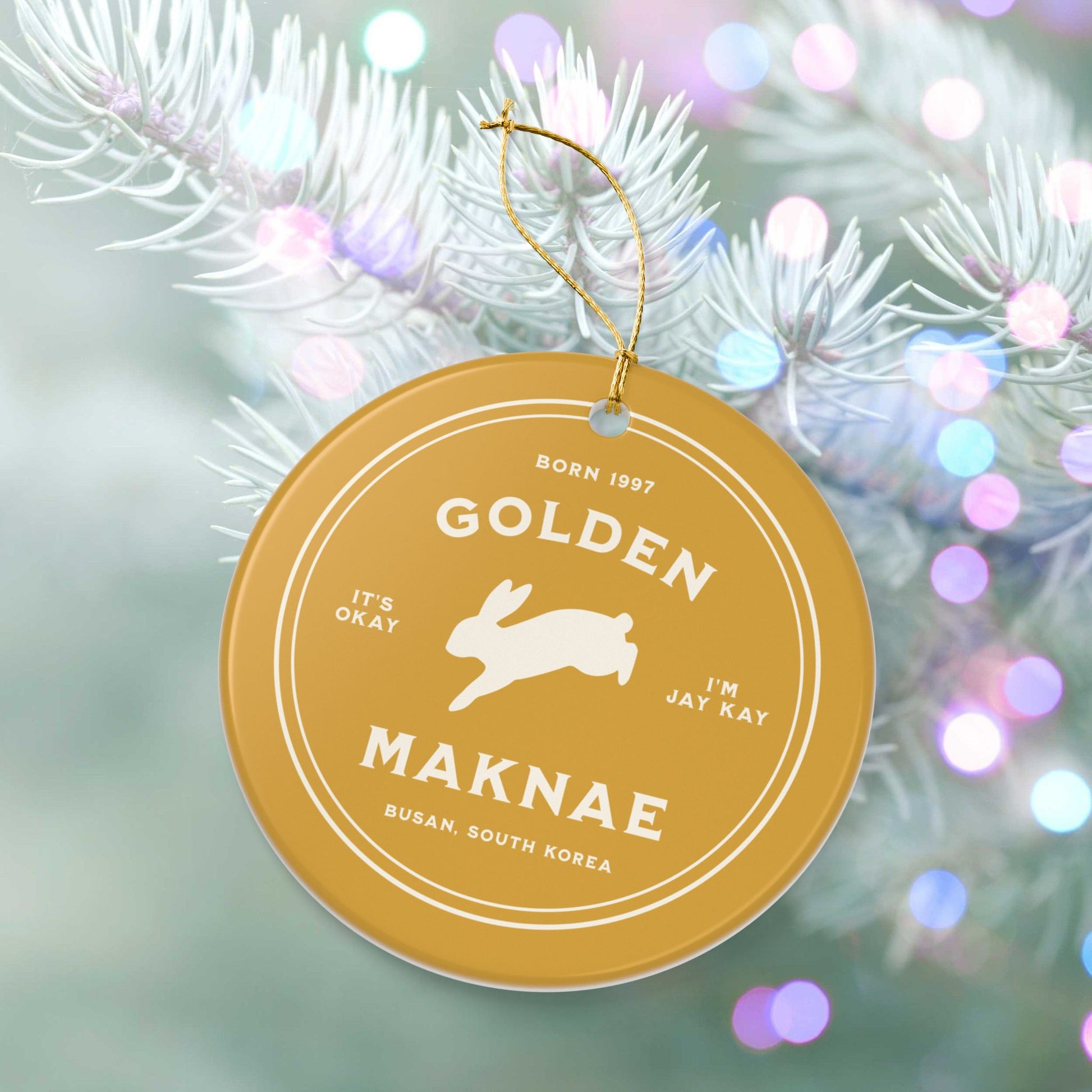 Ready to add a golden touch to your space? Our sleek Golden Maknae Badge Series Ceramic Ornament is the perfect fan-designed BTS Jungkook ornament to celebrate our talented maknae all year long.
