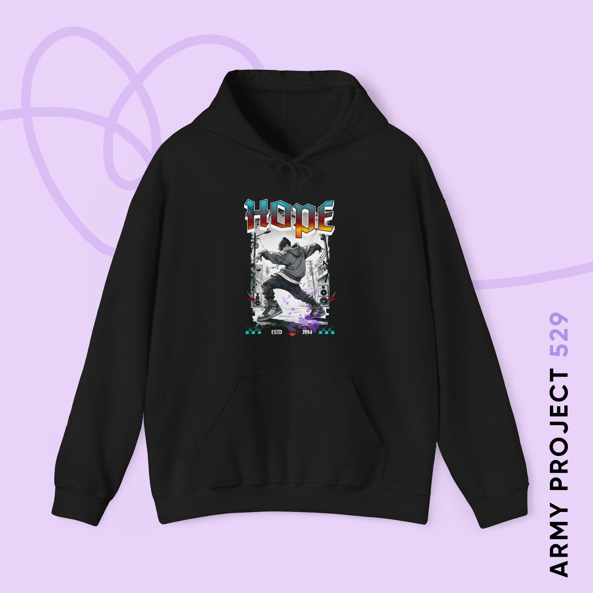 Stay cozy and warm while showing your unconditional love for j-hope with this ultimate j-hope Heavy Blend hoodie! This is a top-tier piece of unisex BTS fanmade merch from our Retro Series, capturing Hobi's bright, optimistic energy and drawing inspiration from the bold '90s hip-hop dance scene. Whether you're wearing it to a chilly concert evening, snuggling up for a marathon of BTS content, or just heading out, this unisex BTS fanmade merch is designed for comfort and style.