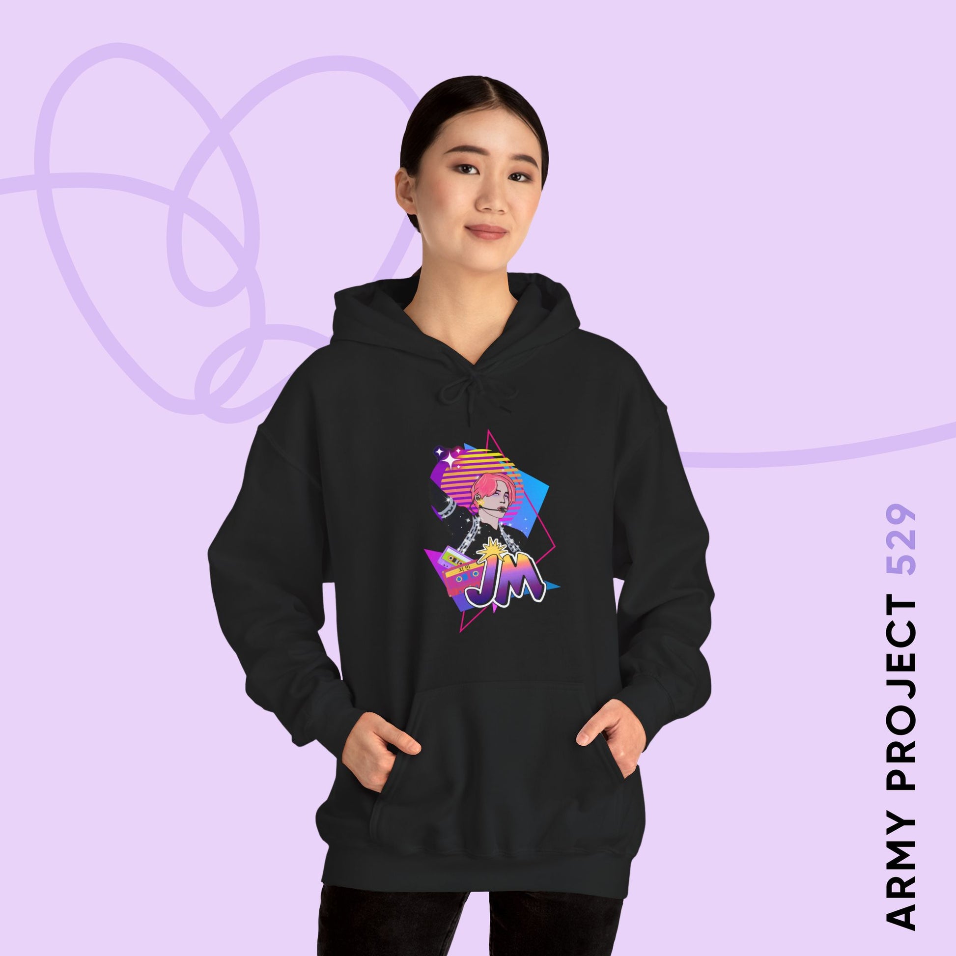 Snuggle up in this premium Unisex Heavy Blend™ Hoodie, featuring an exclusive design inspired by Jimin and the electrifying 1980s aesthetic! This vibrant, high-quality graphic was lovingly made by our Admin team for the BTS ARMY, celebrating Jimin’s timeless talent with bright, nostalgic neon colors.