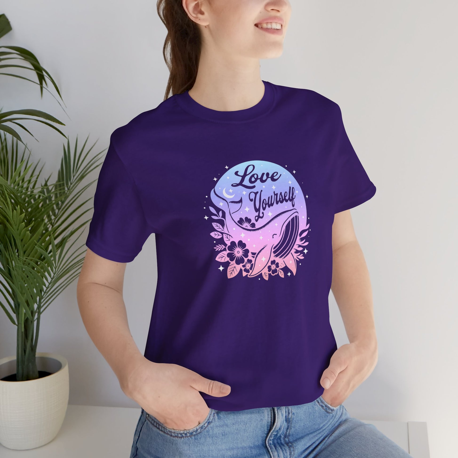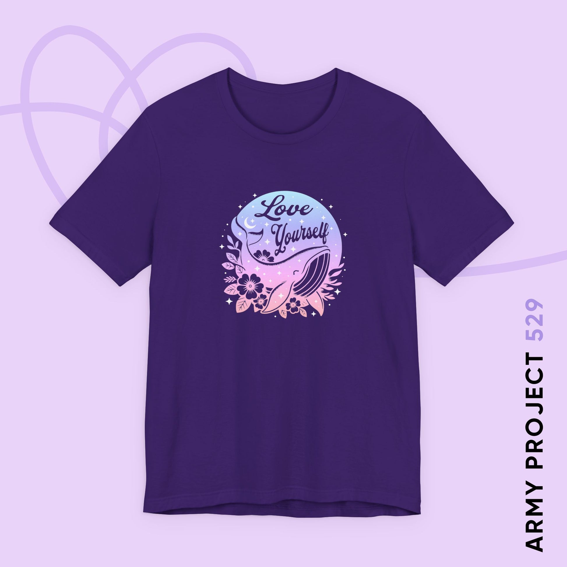 Slip into comfort with the Love Yourself Short Sleeve Tee, a gorgeous piece of fanmade BTS apparel that beautifully captures Bangtan's message of self-acceptance. This premium graphic tee features a whimsical, pastel gradient design incorporating beloved BTS motifs like the whale, shimmering stars, and delicate flowers, subtly nodding to the group's most iconic lyrics and music videos. Designed by an ARMY, for ARMY, this subtle fanmade BTS t-shirt is perfect for everyday wear, letting you carry a piece of your fandom while celebrating the powerful Love Yourself message that defines the ARMY spirit.
