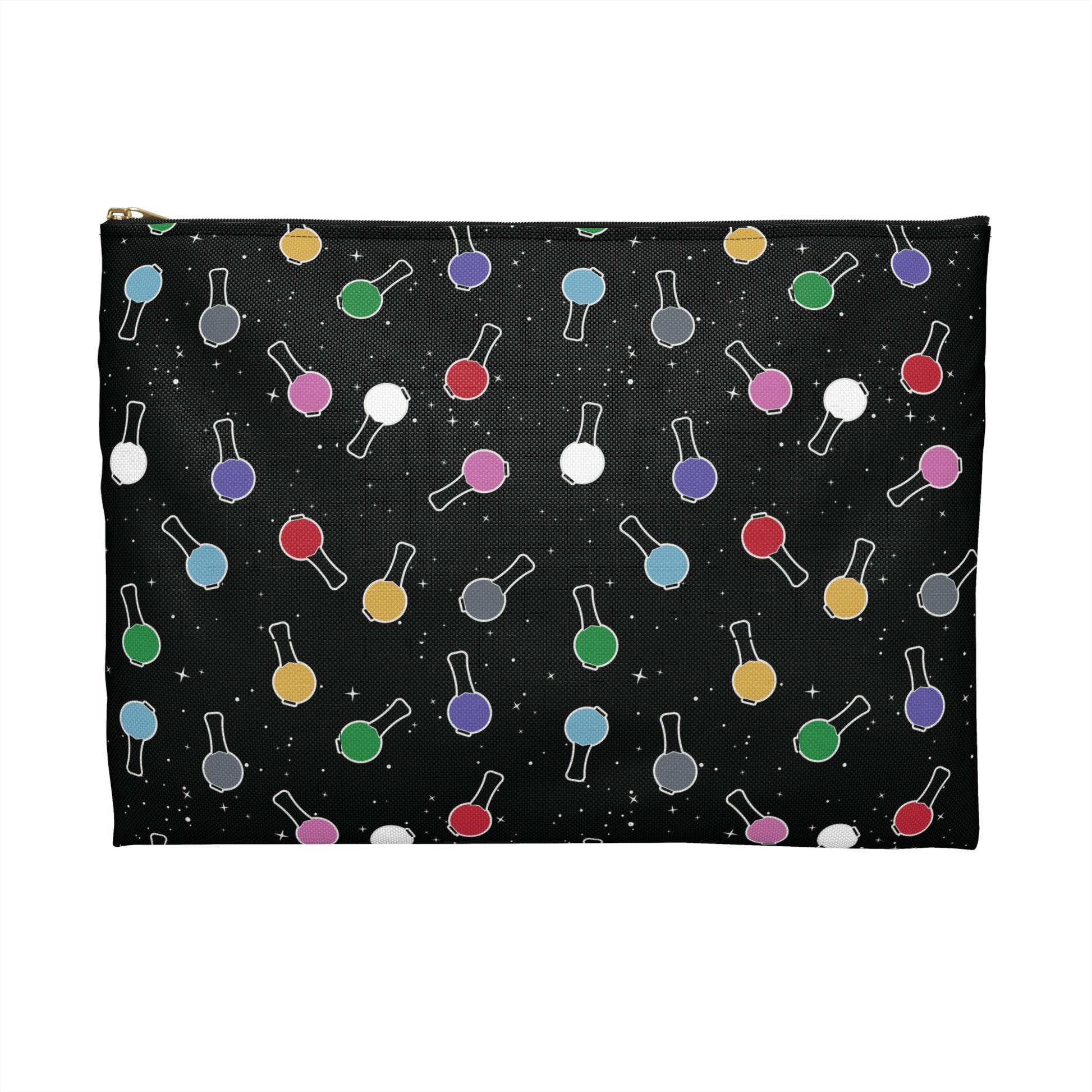 Our flat pouches vary from small to large and can be used for pretty much anything. They make excellent pencil cases and cosmetic travel bags. They are constructed from a durable material with a zipper closure.