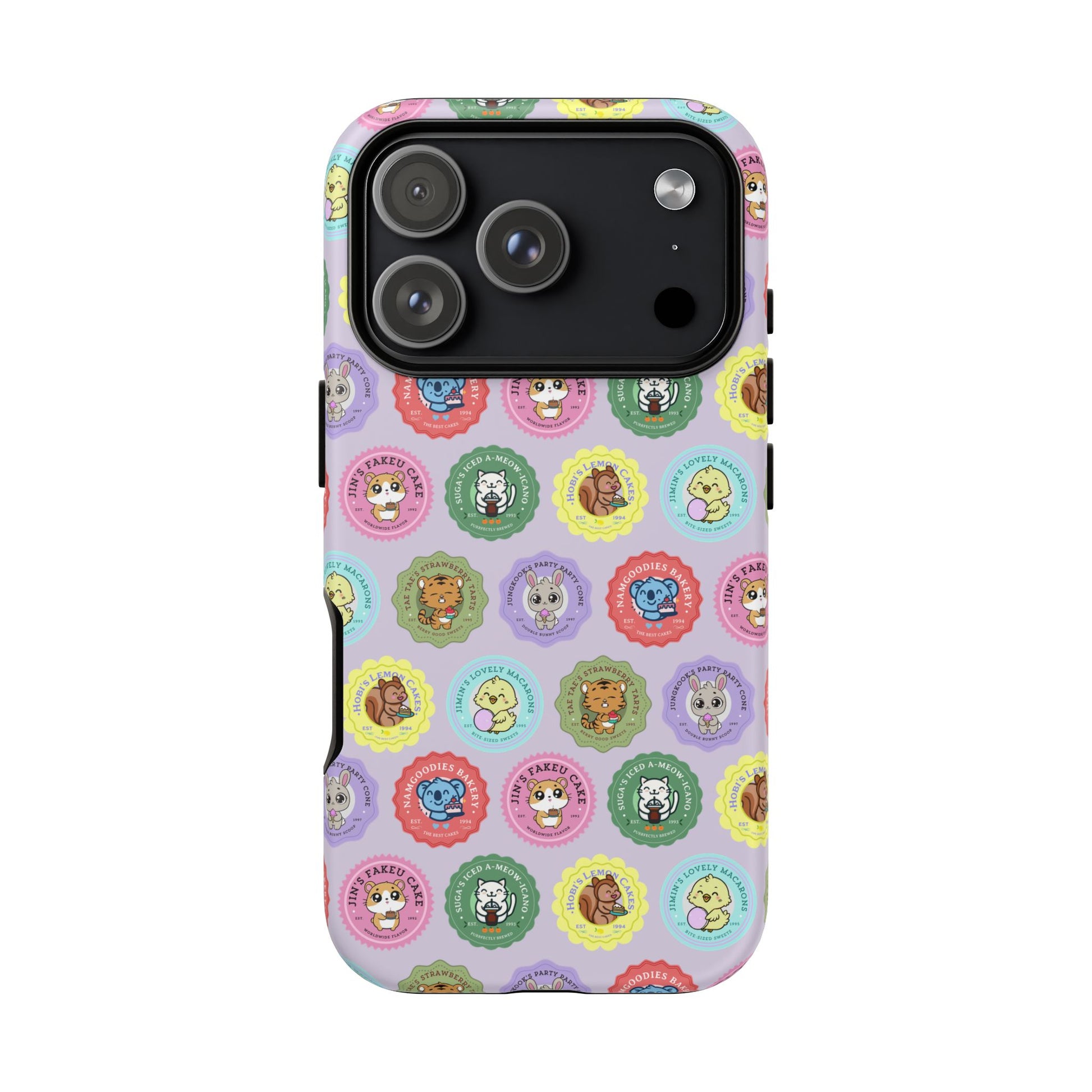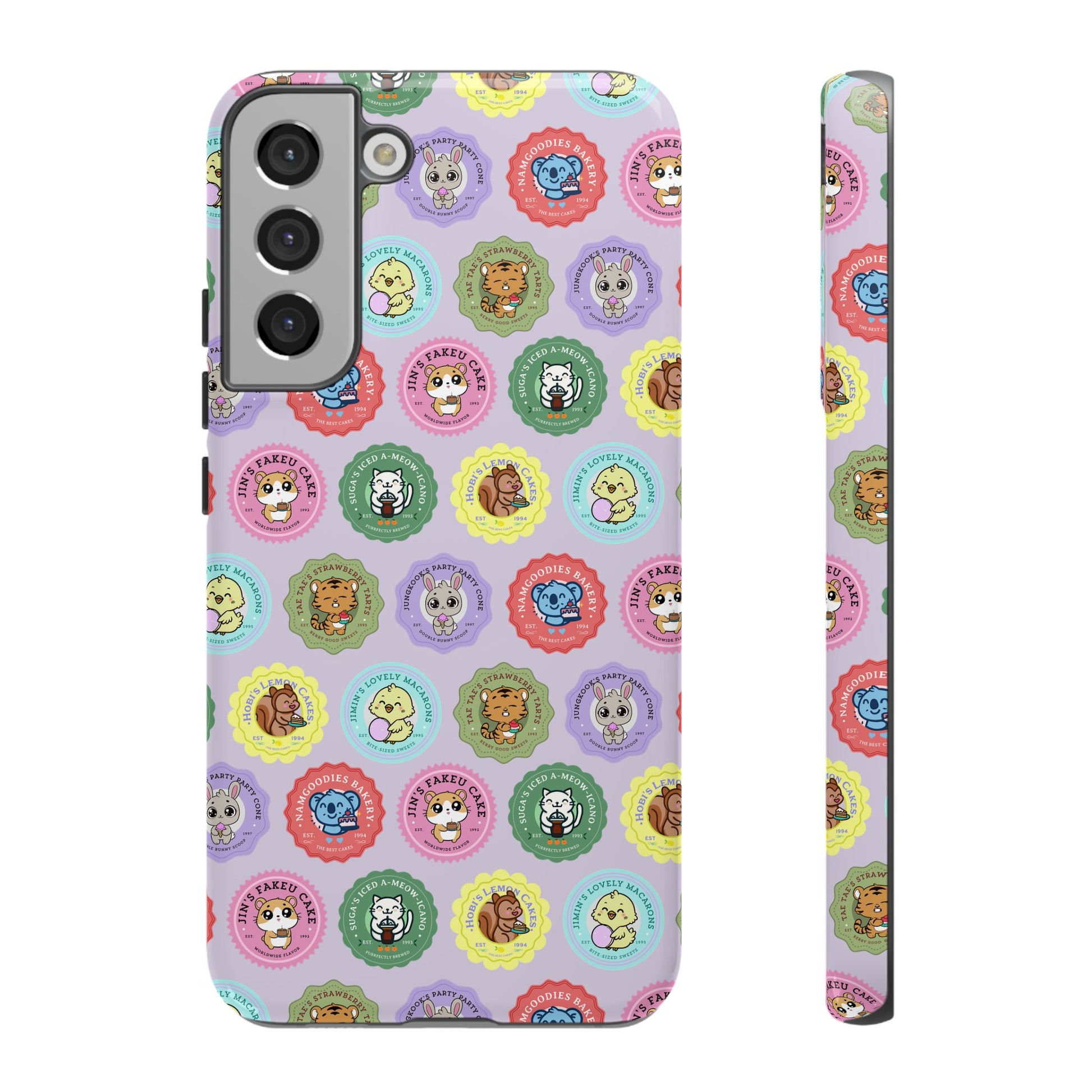 Get ready to protect your device with a delightful design that's a sweet, subtle nod to the fictional world of BTS! This adorable Namgoodies Bakery phone case features a seamless pattern showcasing all the whimsical designs from Bangtan's imaginary bakery. Set against a soft purple background, the design is packed with cute chibi/kawaii-style animal mascots and inside jokes—look closely for references to the members' favorite foods, colors, and iconic phrases! It’s the perfect piece of fanmade BTS merch to carry a piece of the Bangtan universe with you every day.