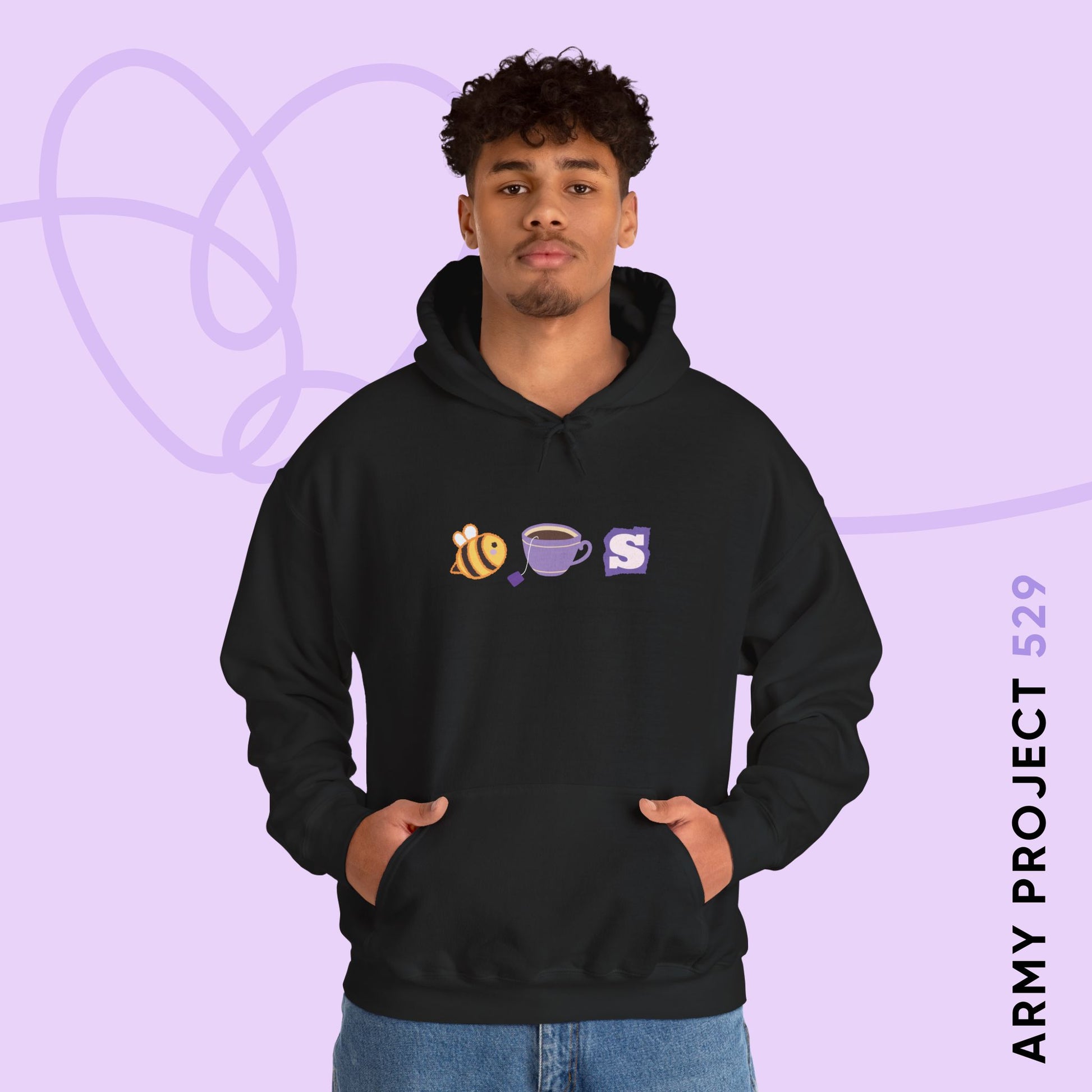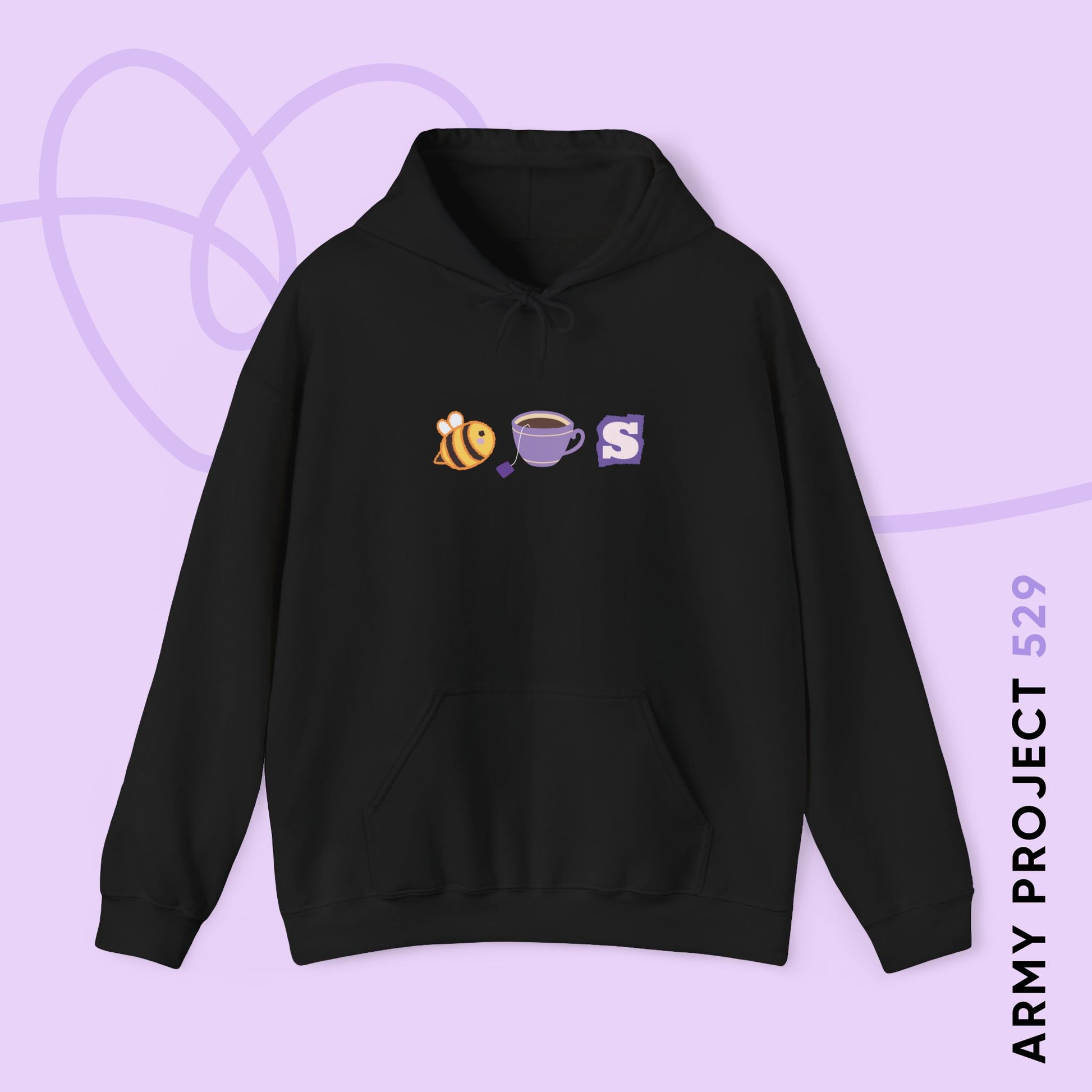 Looking for a witty piece of apparel that's instantly recognizable to those in the know? The Bee Tea Ess Hoodie Tee features a clever design using images of a buzzing bee 🐝, a warm cup of tea ☕, and the letter 'S' to phonetically spell out the name of our favorite band. This unique fan-designed merch is incredibly cute and perfectly subtle, allowing you to show your fandom without being overt. This subtle fanmade BTS sweatshirt is a fantastic conversation starter at ARMY meetups, letting you connect with others who appreciate a clever nod to Bangtan.