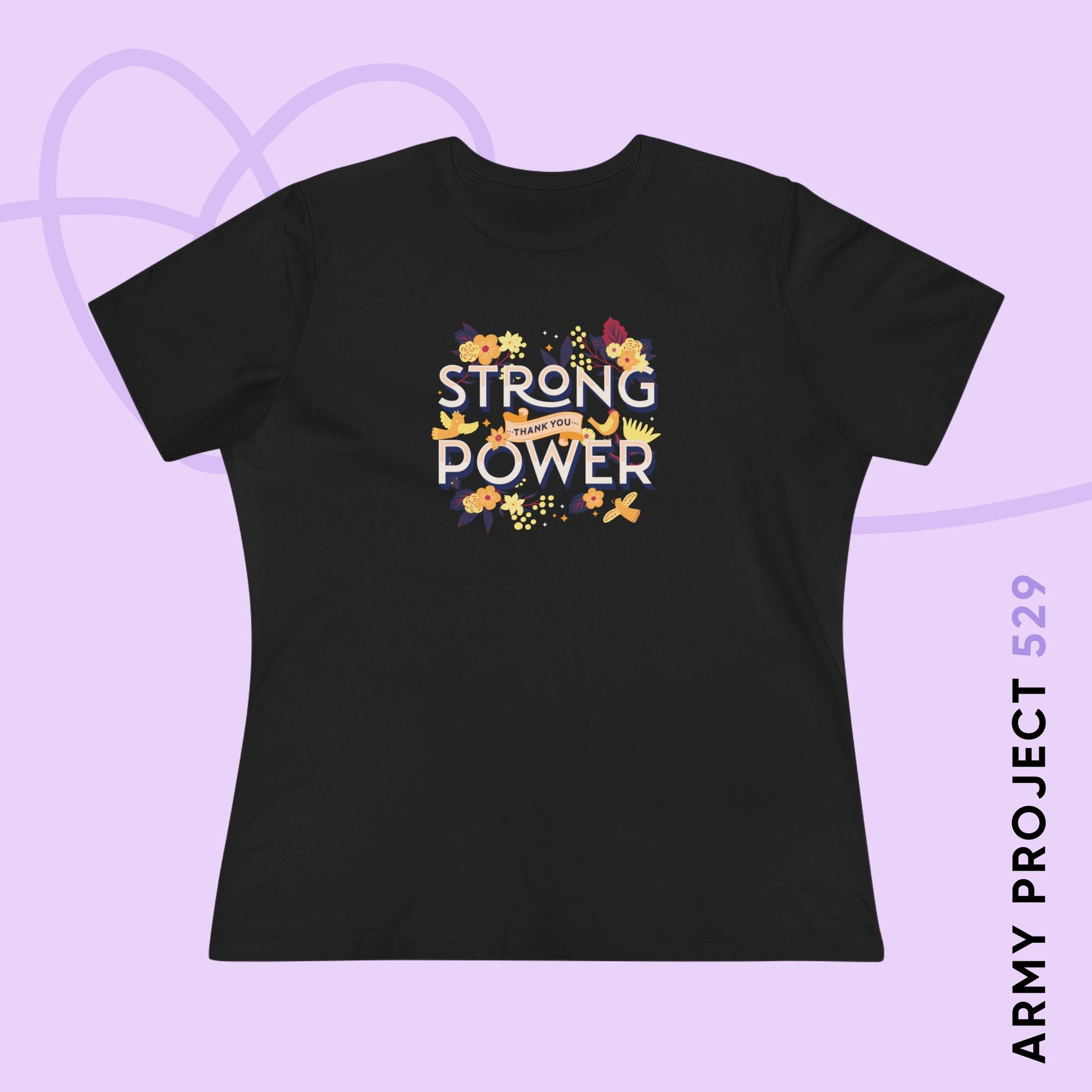 Ready to wear a classic BTS meme with pride? Our Strong Power Thank You Women's Tee captures a hilarious moment in BTS history: RM’s unforgettable translation of V's message in 2016 as "strong power, thank you". This exclusive fan-designed BTS apparel features beautiful typography framed by warm yellow and orange floral artwork. It’s a subtle nod to your fandom and a funny inside joke that fellow ARMY fans will recognize.