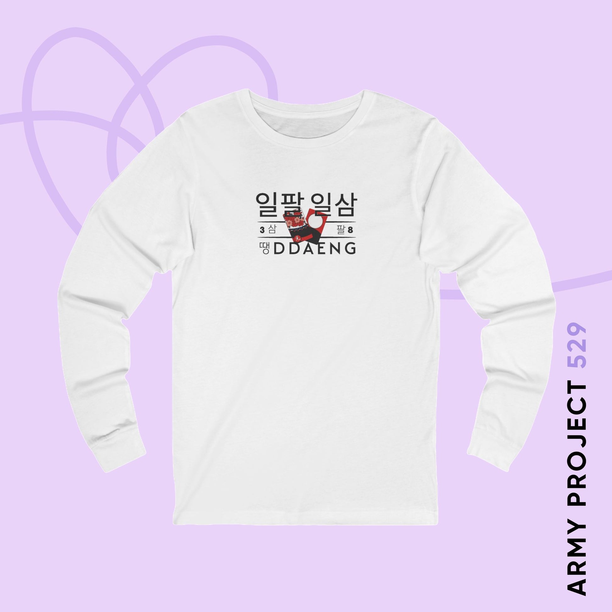 Settle the score with our Ddaeng Long Sleeve Tee, the perfect way for any ARMY to subtly celebrate the legendary, streaming-elusive song by the Bangtan rapline! This exclusive fan-designed BTS shirt features a striking, clean black-and-white graphic with bold red accents, drawing inspiration from the song's epic wordplay and Korean fishing card game, Godori. The design includes references to winning numbers and Hwatu cards used to play Godori, making this fanmade BTS shirt a meaningful piece of apparel for those who appreciate rapline brilliance and clever lyrical devices.