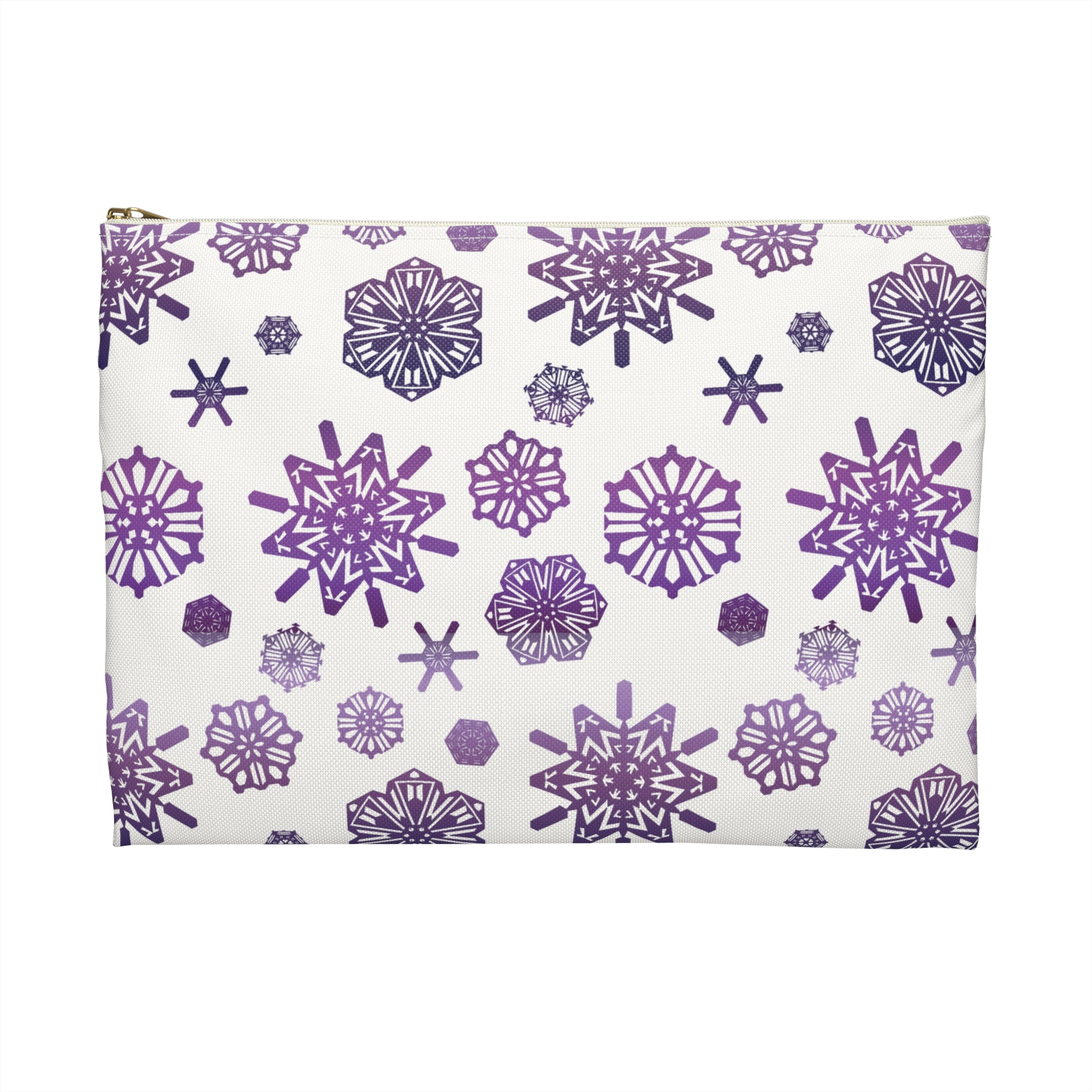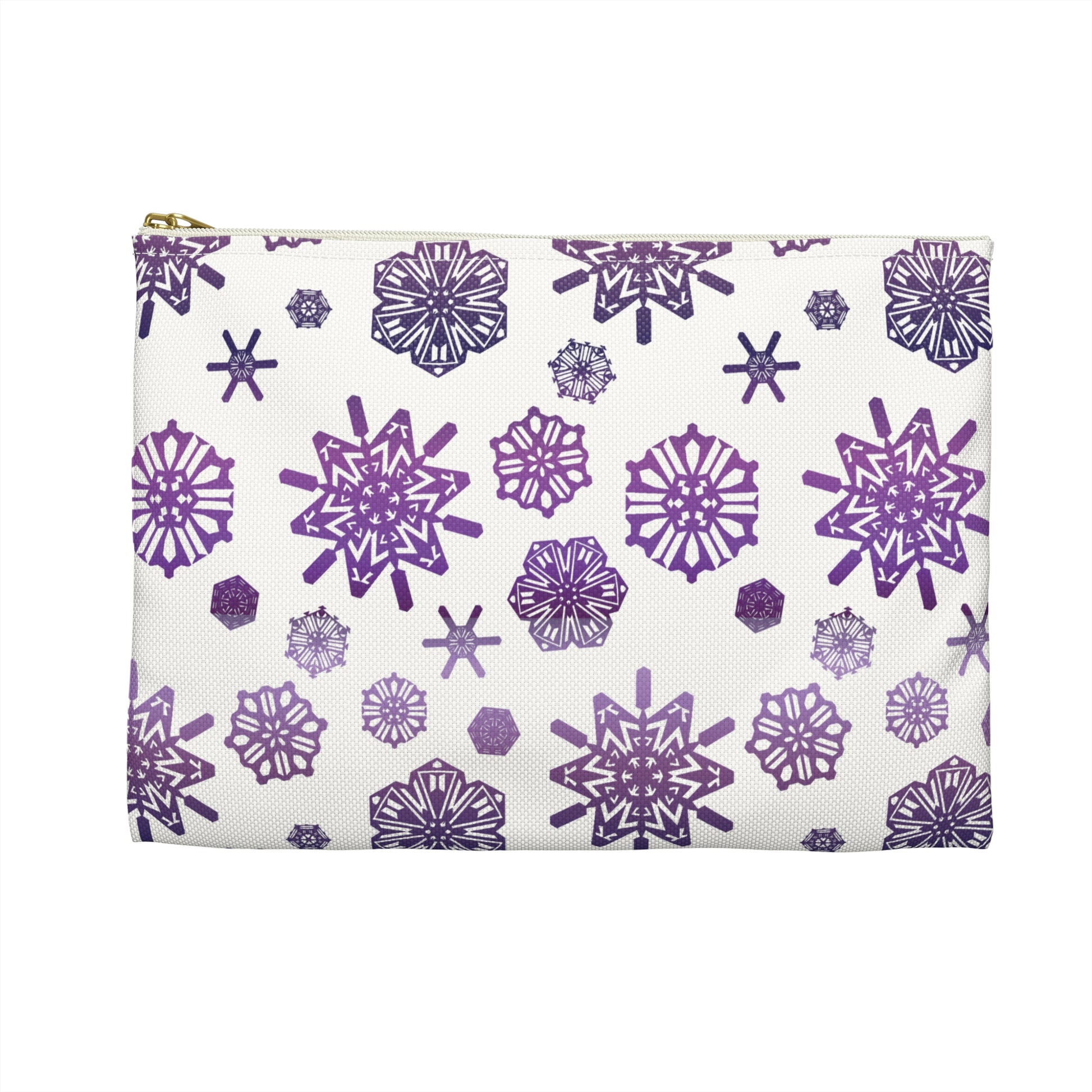 Travel in style this winter with the Secret Snowflakes Cosmetics Bag! This zippered accessory pouch features a gorgeous pattern of purple gradient snowflakes scattered across a winter white background. The design is cleverly crafted for the discerning fan: look closely, and you'll find hidden BTS and ARMY symbols—like the lucky number 7 and small hearts—embedded within the classic winter motif. This pouch is the ideal piece of fanmade BTS merch for any ARMY who loves beautiful and clever accessories.