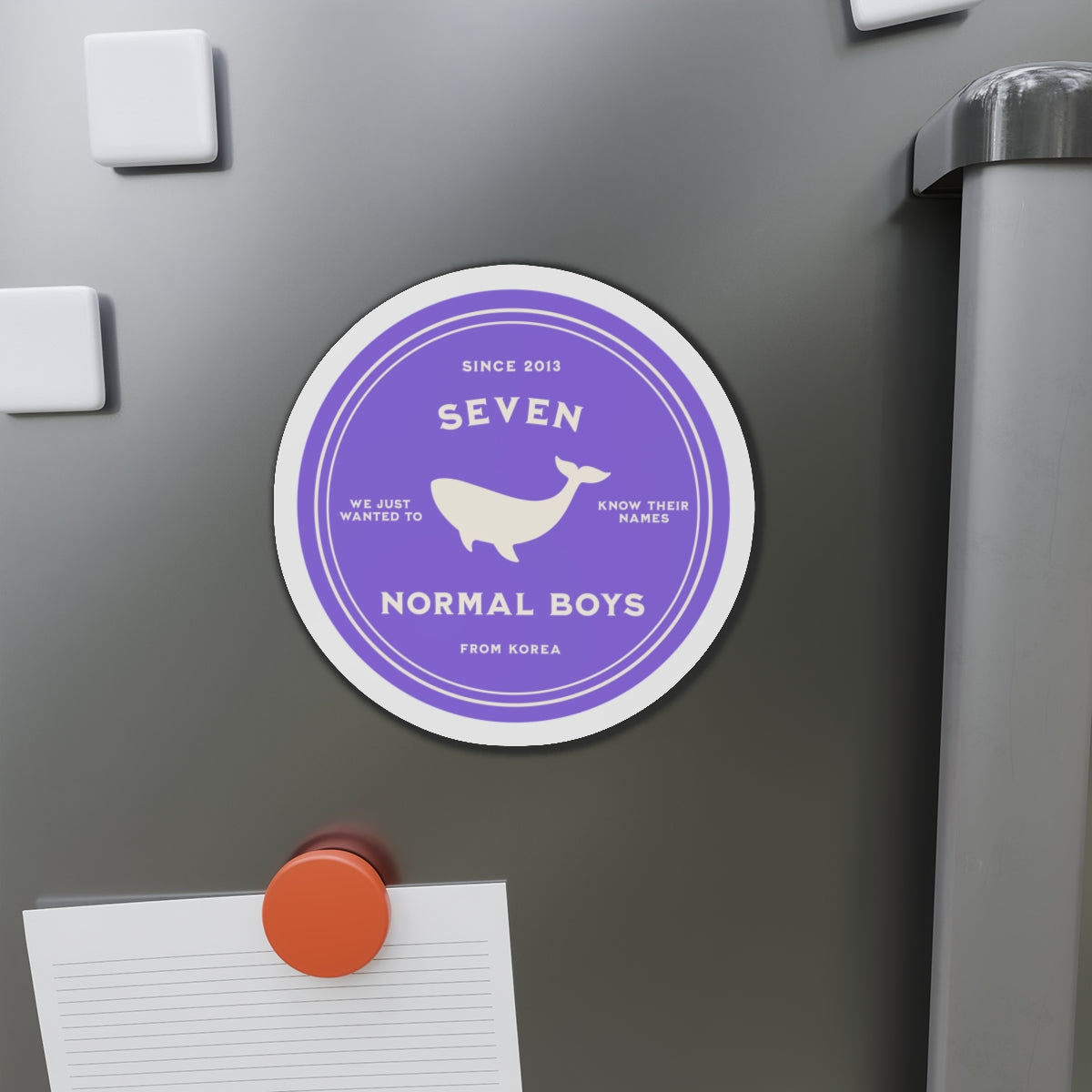 This magnet features an original design created by our team, celebrating all seven members of BTS with a symbolic Whale silhouette. The text honors their humble origins and inspiring story: