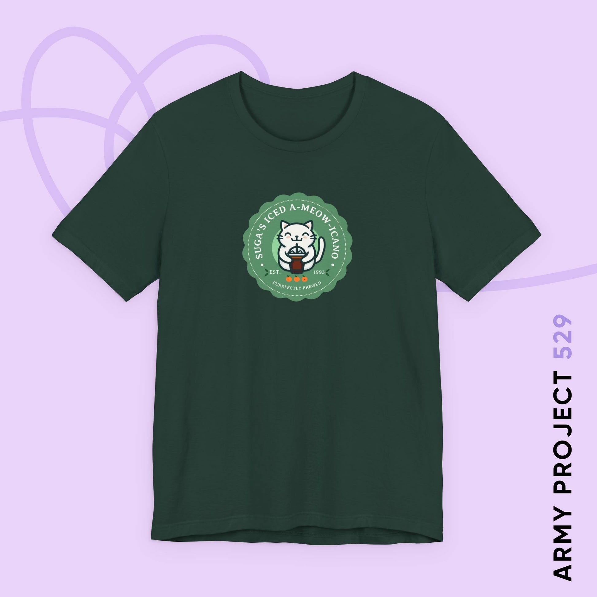 Get ready to purr-sonalize your style with this super-soft Yoongi short sleeve tee! Featuring the exclusive "SUGA's Iced A-Meow-icano" design from our Bangtan Bakery Collection, this shirt showcases an adorable chibi cat version of Yoongi (SUGA / Agust D) enjoying his essential iced Americano. This fanmade BTS t-shirt is the perfect piece of ARMY clothing for fans who prefer subtle, high-quality apparel. Don't wait, get your paws on this lightweight fanmade SUGA shirt and espresso your love for Agust D!