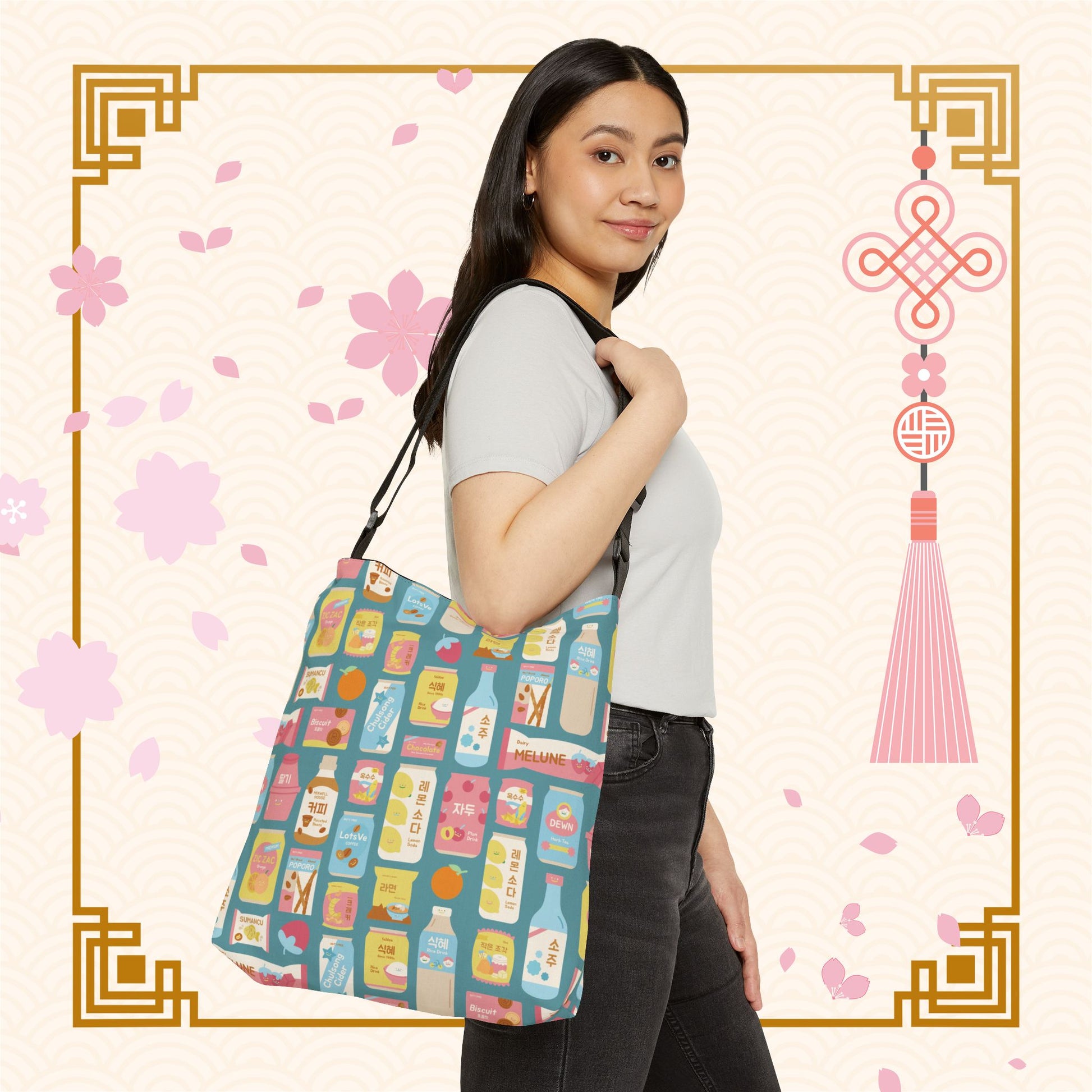 Sweet Pastel Korean Snacks Adjustable Tote Bag (AOP)