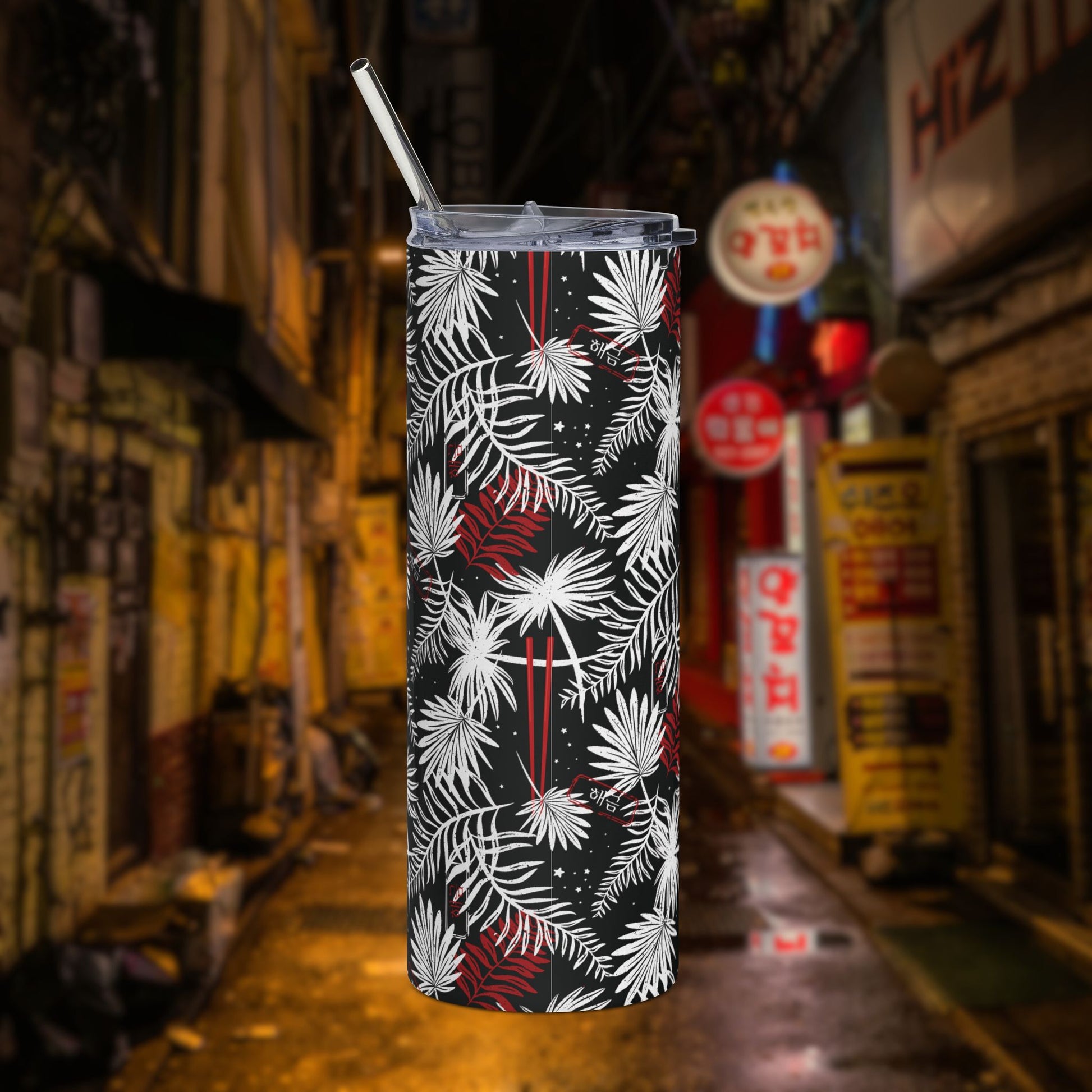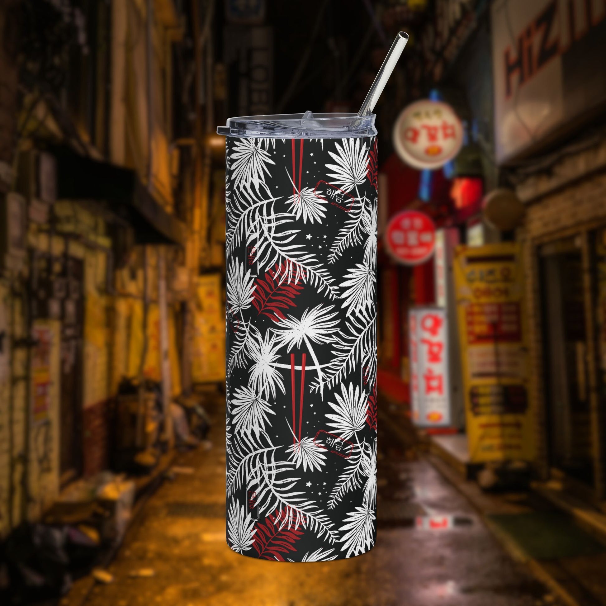 This handmade pattern is a haegeum! Floral and leaves, with some stars–but look closer and you'll see the red chopsticks and Hangul as well.