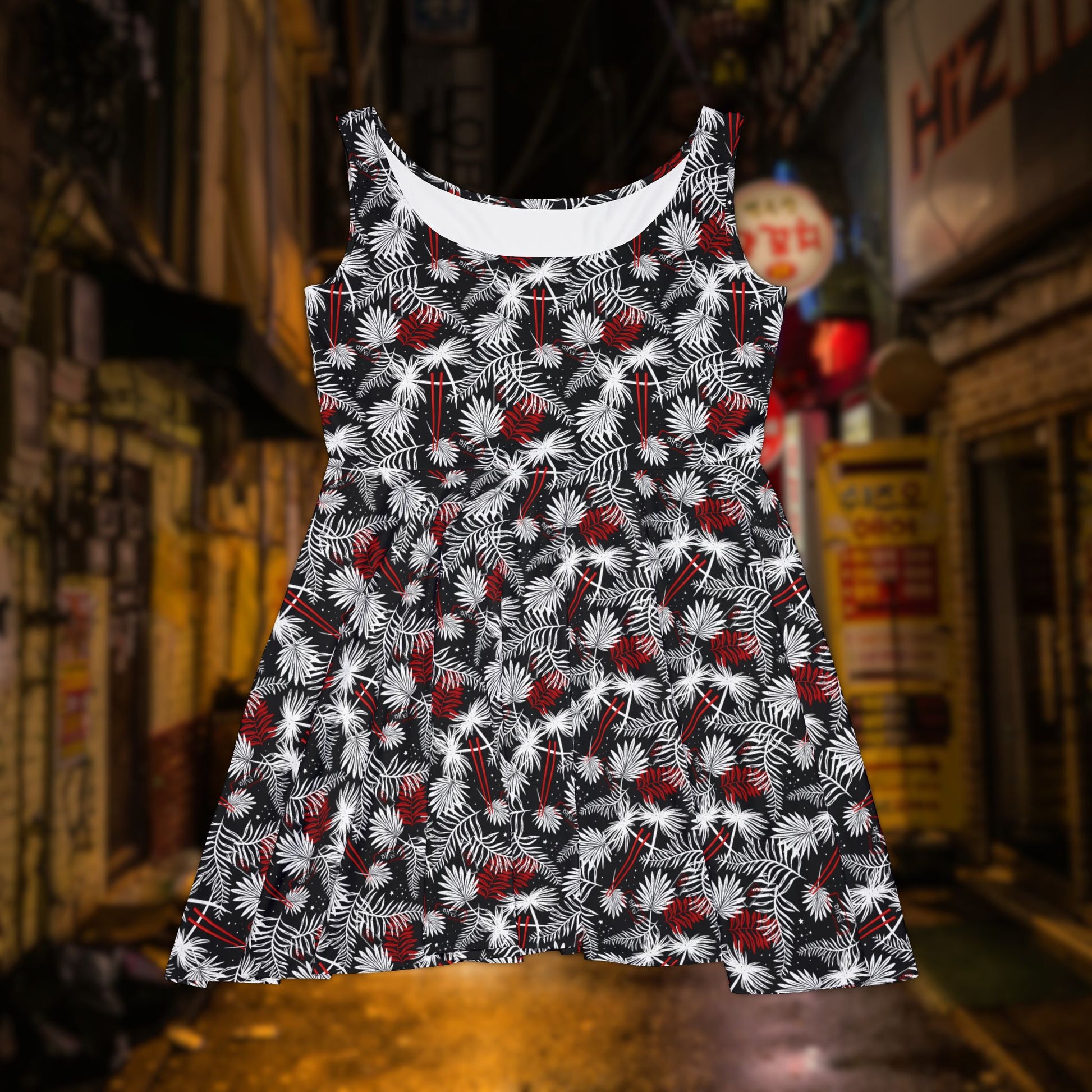 This handmade pattern is a haegeum! Floral and leaves, with some stars–but look closer and you'll see the red chopsticks and Hangul as well.